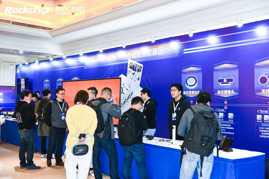 在辦公及會議展區(qū),展出品類包括會議大屏、云終端、會議音頻設(shè)備、會議攝像頭、無線投屏等?;谌鹦疚⑥k公及會議解決方案RK3588、RK3568、RK3566、RK3308的性能加持,讓各類終端極具市場競爭力。