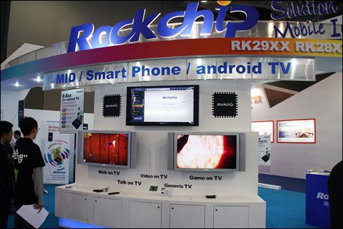 On April 12, 2011, a brilliant show of electronic products was performed at the booth of Fuzhou Rockchip Electronics Co, Ltd, on the China Sourcing Fair (CSF). With the new released RK29xx solution, terminal products including Android TV, MID and Smartphone has taken on a brand-new outlook with Gingerbread (Android2.3), attracting many buyers on the spot; other products on PMP and eBook are also shown to the buyers in this show.